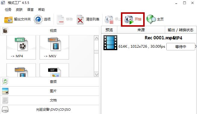在转化界面中点击顶部的【开始】选项,调整视频播放速度。