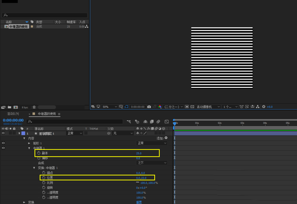 以上就是AE中继器实现横条铺屏效果的教程,希望大家喜欢,请继续关注脚本之家。