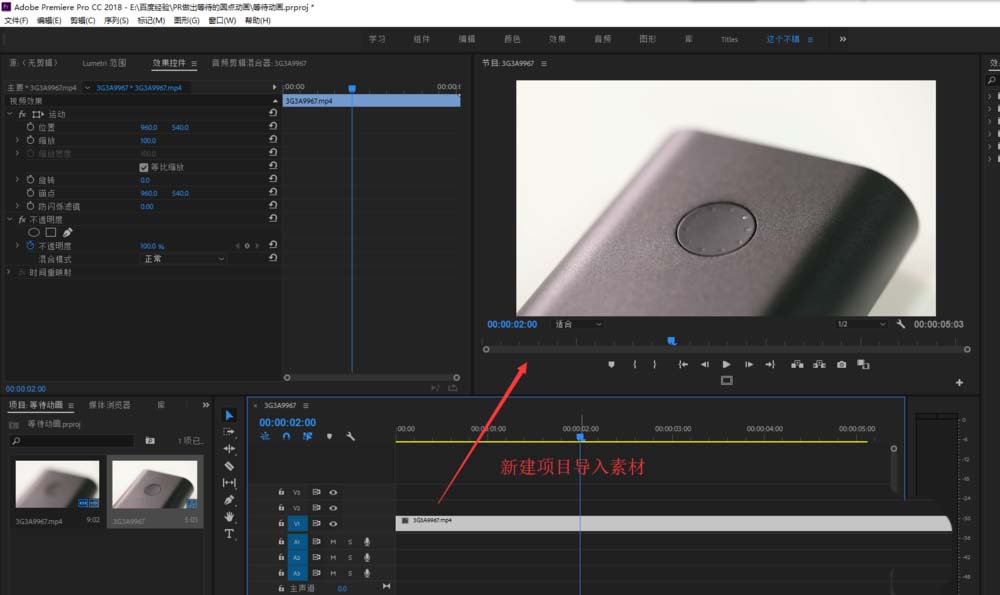 1、先来新建PR项目,创建序列,导入编辑素材,并将素材拖到序列时间轴的视频轨道上。