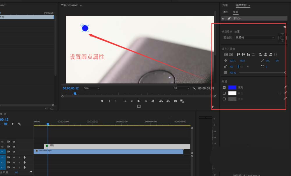 3、选中绘制的小圆点,打开基本图形窗口,在基本图形中设置这个绘制小圆点的基本属性,如填充颜色等。