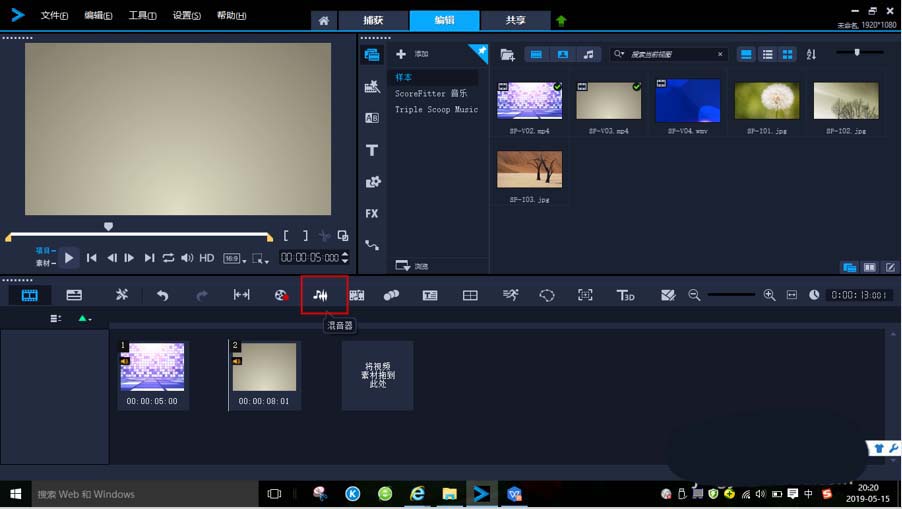 会声会影X5怎么将两个视频合并到同一画面?