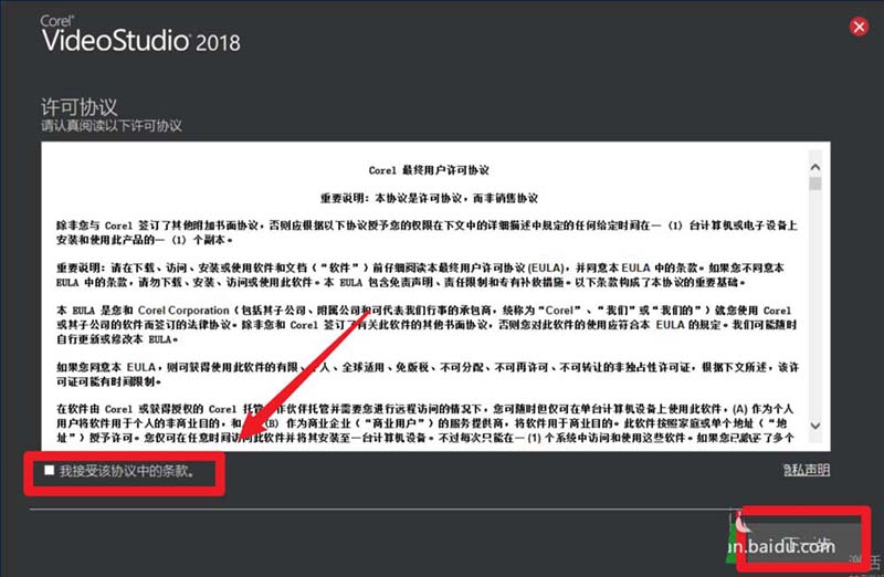 4、点击我同意协议,之后点击下一步,不点击我同意协议,是点击不了下一步的。