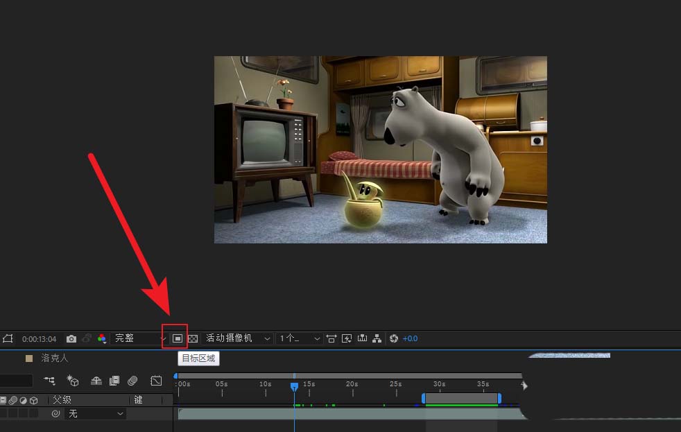 1、打开AE,新建工程,导入视频,新建合成。在视频的预览窗口下面,点击目标区域按钮,选中后会变成蓝色的图标。