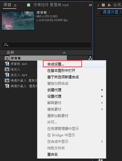 1、在目标合成上右键,打开合成设置,