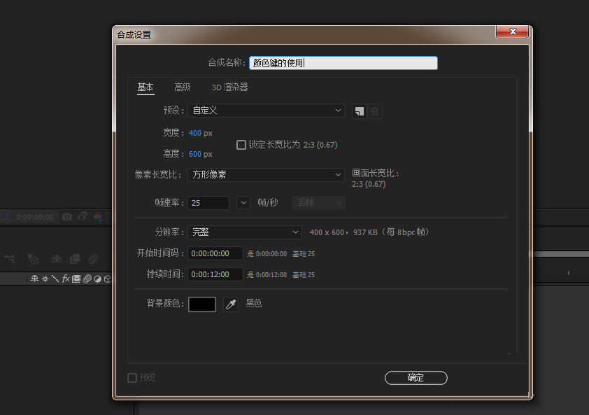1、打开AE软件,命名颜色键的使用,调整相应的参数。