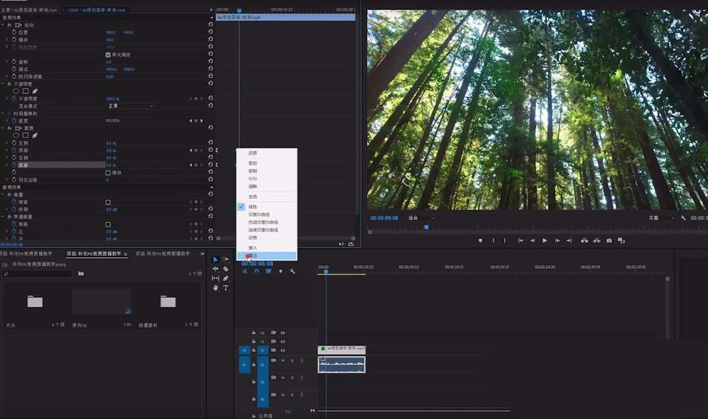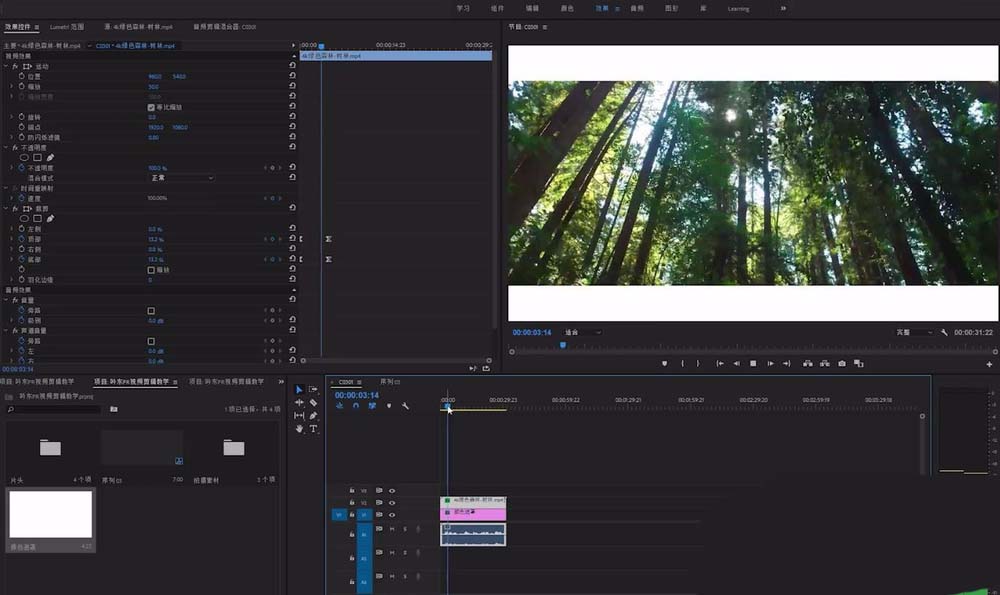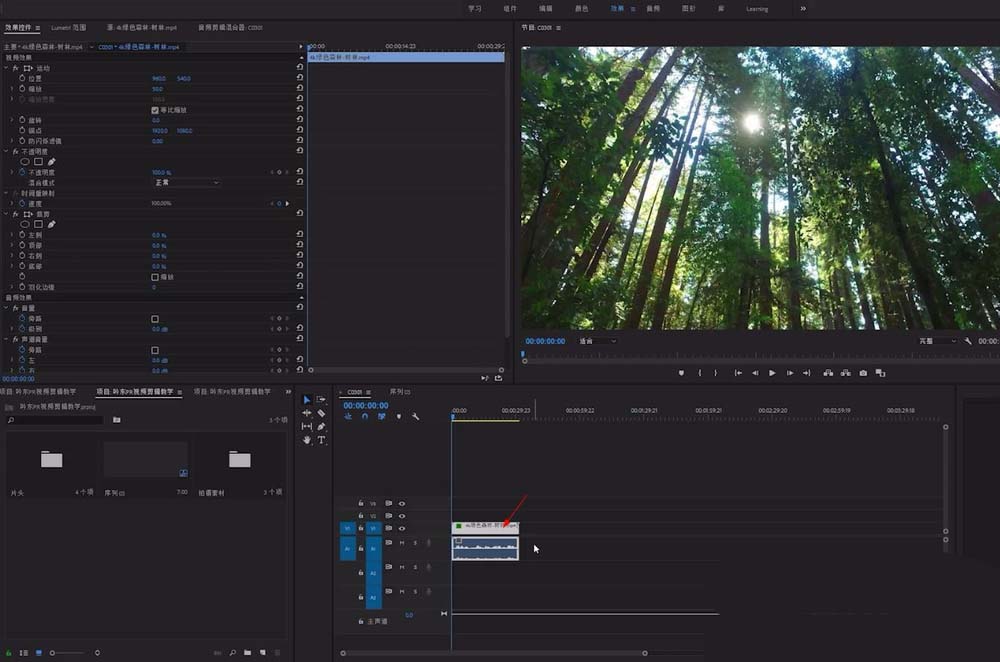 1、首先打开premiere(以下简称pr),打开将要用到的素材,把它拖入序列制作轨道窗口中(如下图)