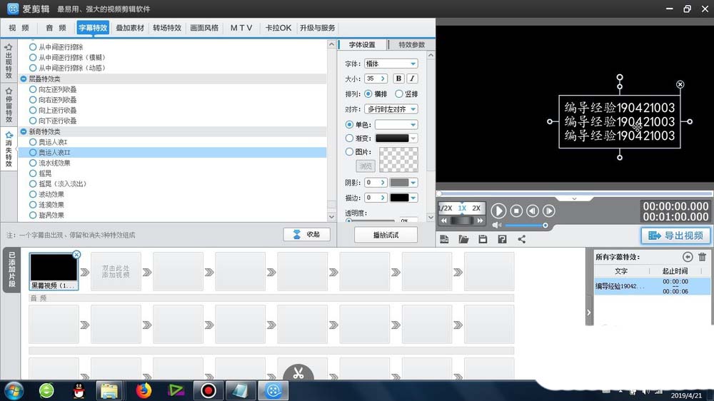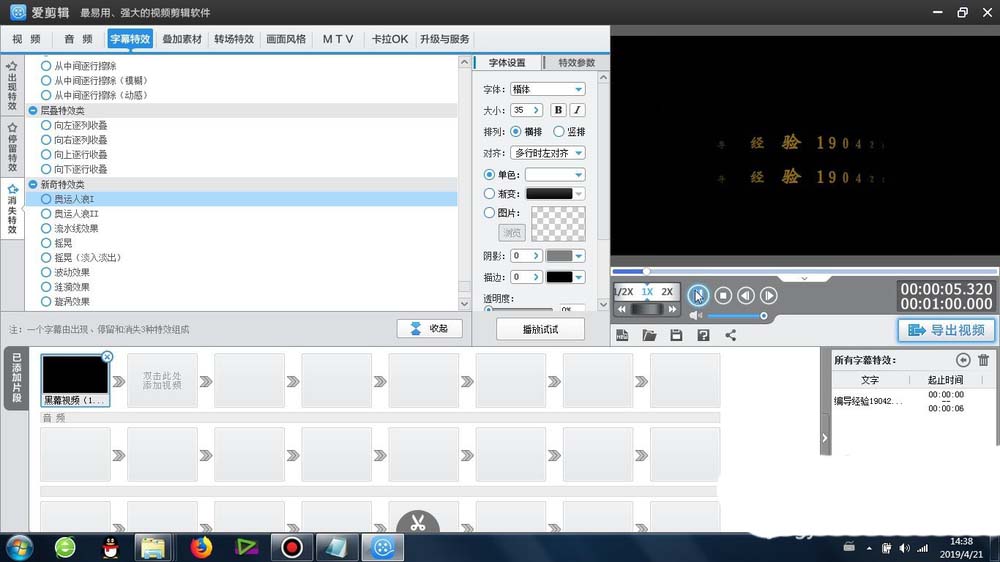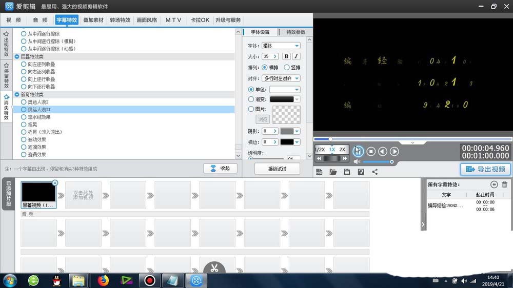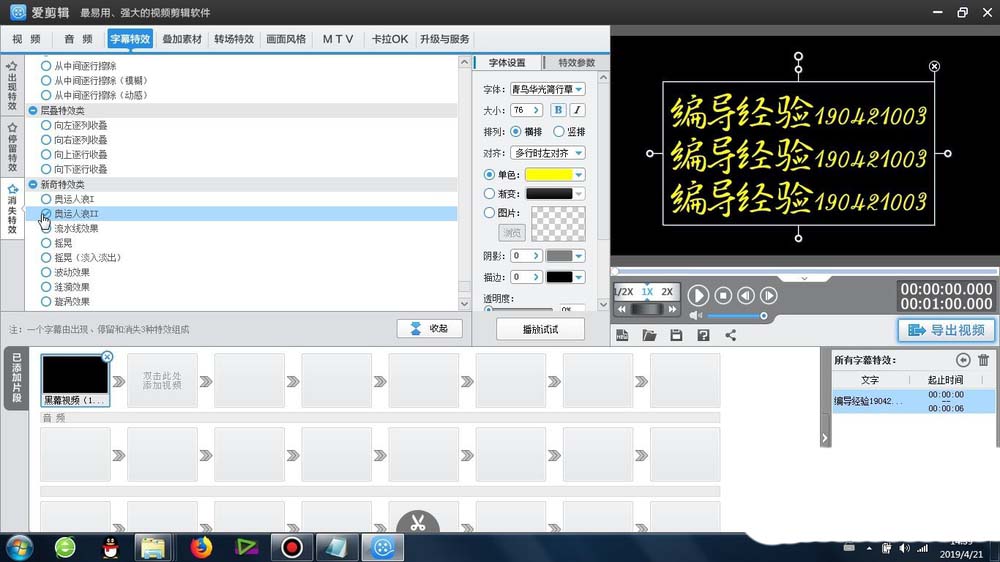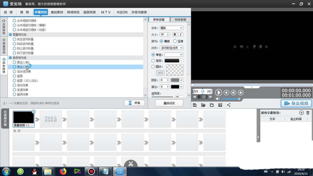 1、首先这个奥运人浪1效果 -是在爱剪辑里面的字幕特效-消失特效-新奇特效类-可以找到