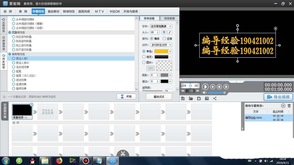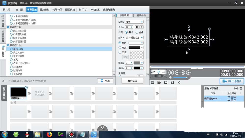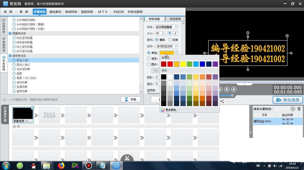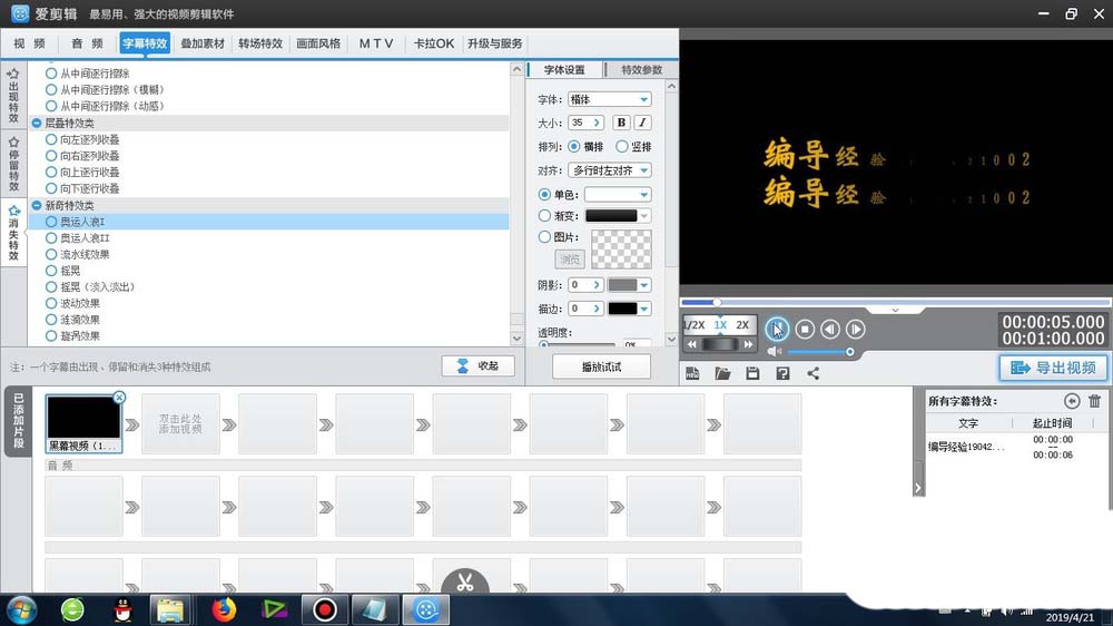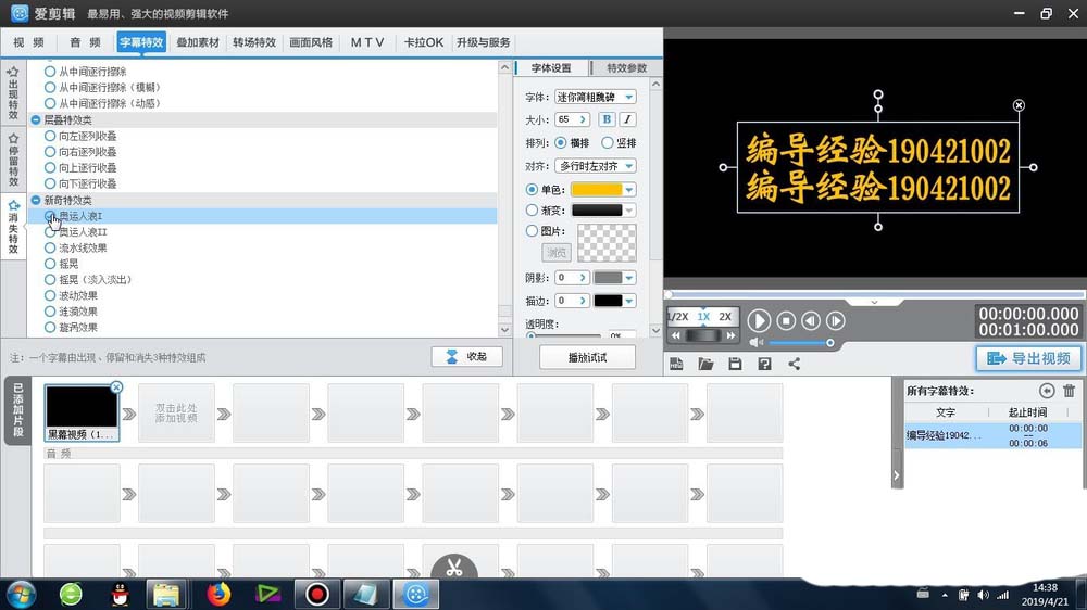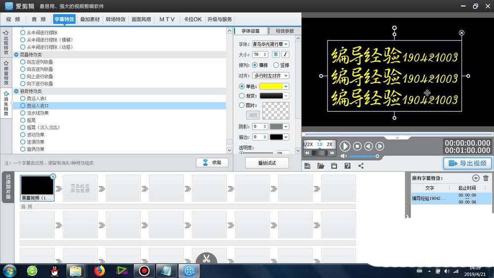 1、首先这个奥运人浪1效果 -是在爱剪辑里面的字幕特效-消失特效-新奇特效类-可以找到