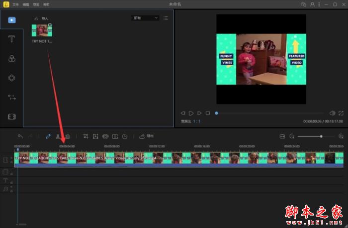 然后拖动播放指针,选中素材,在你需要倒放的节点选择“分割”,分割出一个片段。其他不要的点击“垃圾箱”删除。