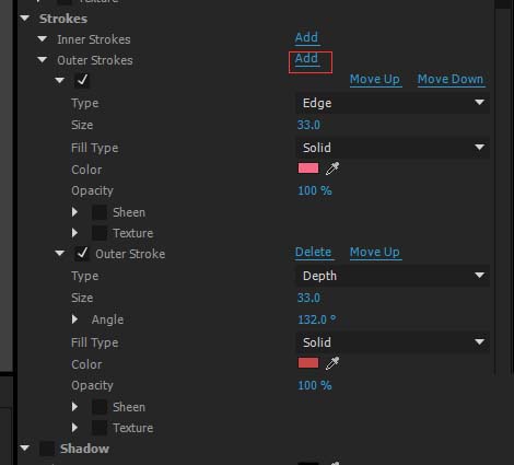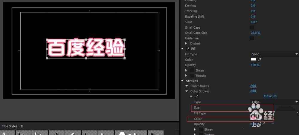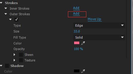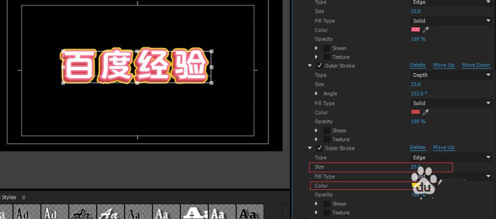 接下来我们给文字添加第一层描边,按下Outside(外层)add,给他添加描边,然后更改颜色和描边大小