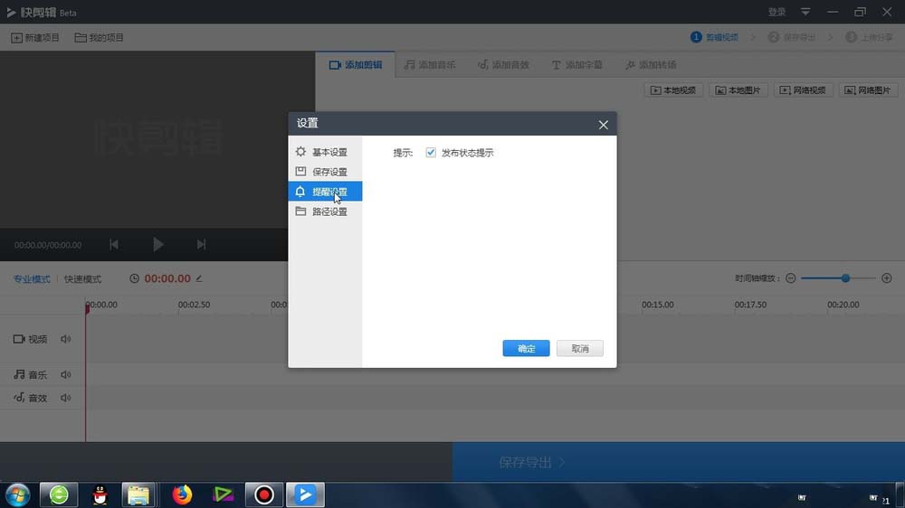 快剪辑中想要设置提醒,该怎么设置发布状态提醒呢?下面我们就来看看详细的教程。