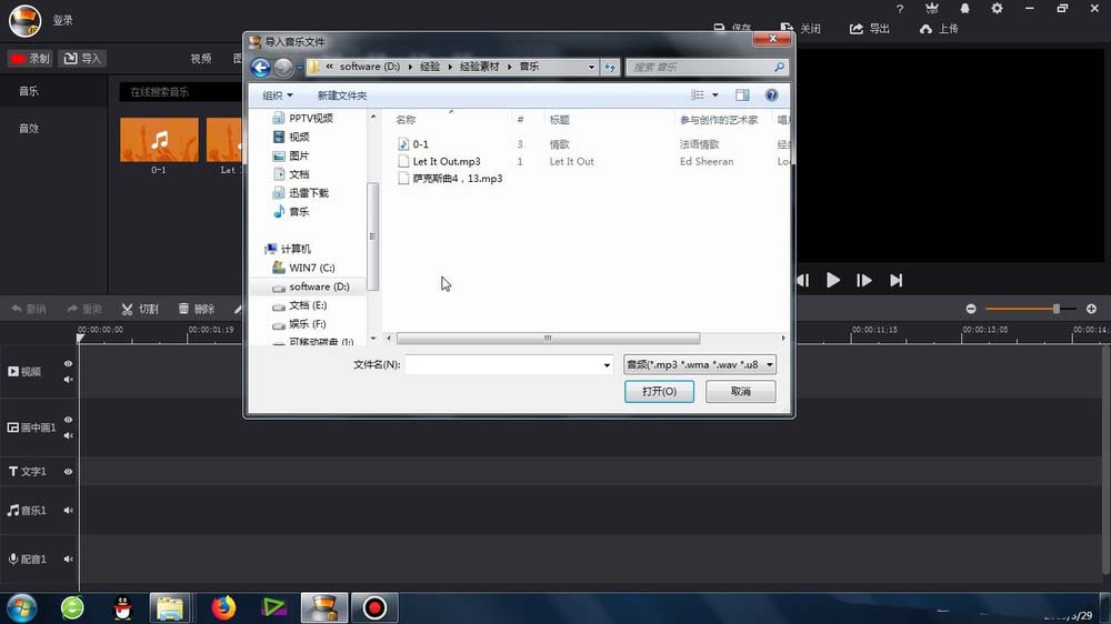 2、接下来就是素材的导入,必须是音频素材