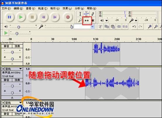 ”时间移动工具来调整,选择该工具,然后选中要移动的音轨随意拖动就可以调整位置了。如图10所示。