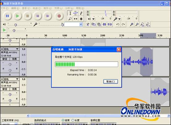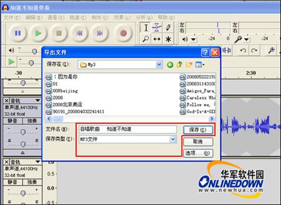 调整到你满意以后,就可以把你录制的歌曲进行输出了;单击“文件”菜单,选择“导出”选项,弹出导出文件对话框,在此设置文件的输出路径及输出名称,选择保存文件的类型,然后单击“保存”按钮即可。如图12所示。