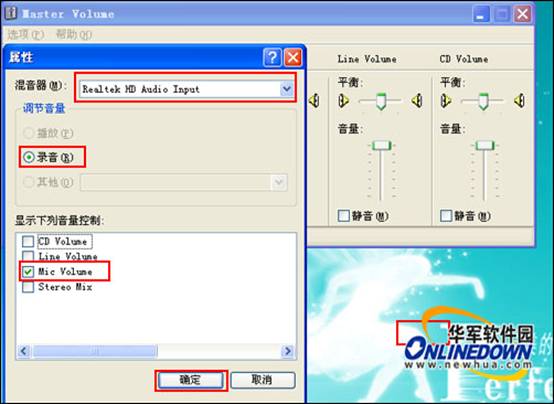 接下来双击屏幕右下角的小喇叭图标,在打开的窗口中单击“选项”菜单选择“属性”;打开一个属性窗口,在此选择录音,然后再选择麦克风。如图4所示。