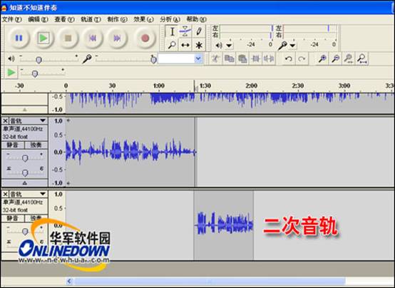 在录制过程当中如果停止的话,想要接着录的时候,再次单击“录音”按钮即可进行再次录制,不过每次录制会弹出一个新的音轨。注意停顿再接着录的时候,必须要把光标移动到刚才停止的位置,然后再进行录制这样才能接得上。如图7所示。