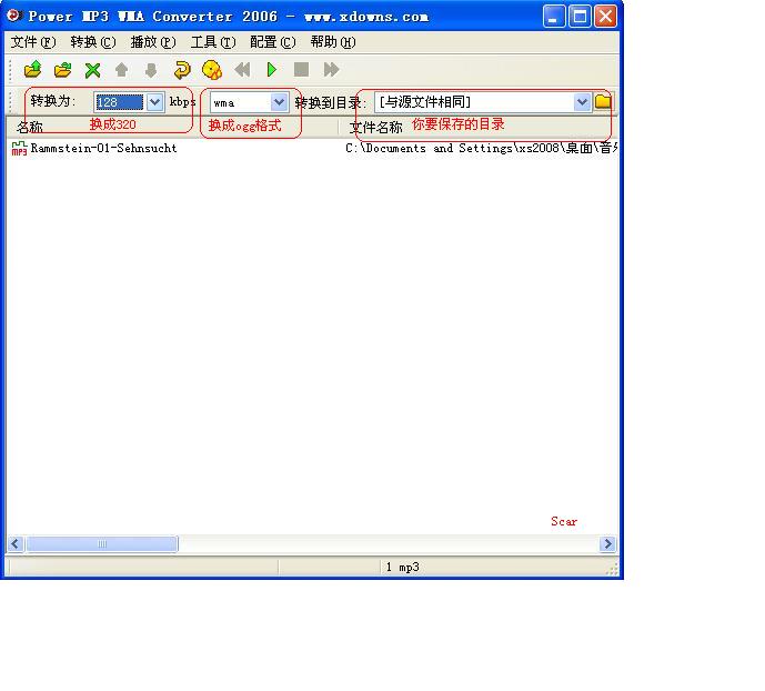 使用 Power MP3 WMA Converter,你可以在MP3 WMA WAV OGG APE 音频格式之间相互转换,你也可以更改 MP3 WMA OGG APE 音频文件的比 特率。