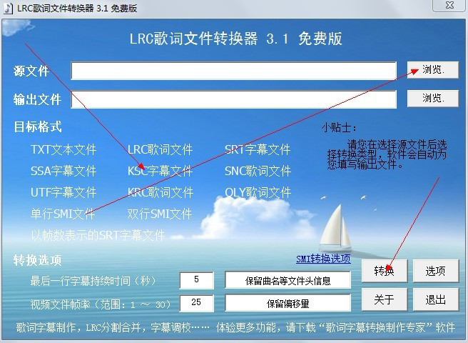 3、用LrcCon软件把LRC 文件转换为KSC 文件