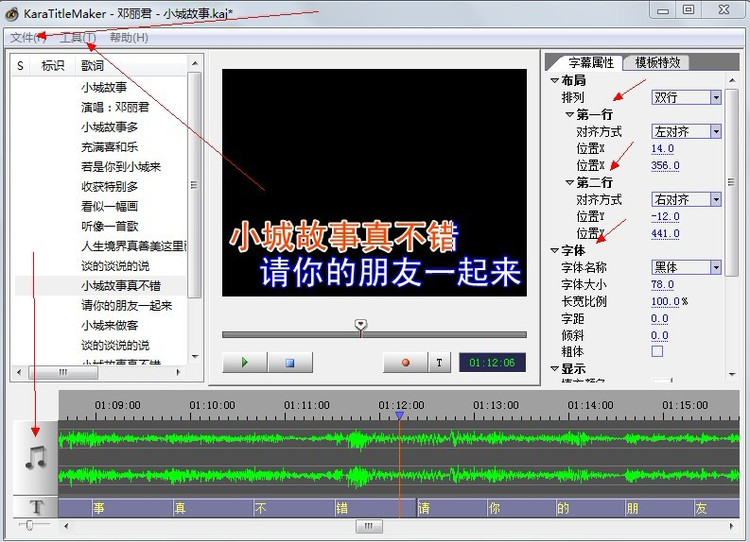 5、打开字幕编辑器KaraTitleMaker,文件-项目-导入歌词