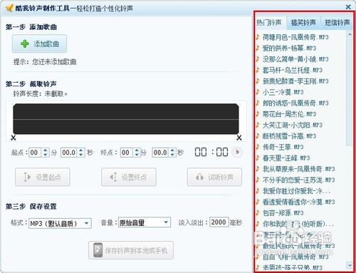 酷我铃声制作工具下载:www.jb51.net/softs/133343.html