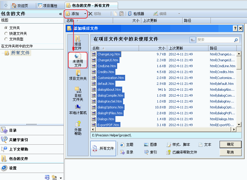 如果您目前正在使用其他 CHM 制作工具,则可以获取它们在编译项目时的所有源文件(包括项目文件、目录文件、索引文件和网页文件等)直接作为 Precision Helper 中的项目,如果获取项目文件较为困难(例如网上获取的 CHM 文件),则可以反编译 CHM 文件来新建项目。