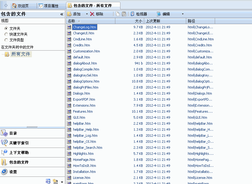注:制作 CHM 并不一定要求需要目录和索引,不过对于包含较多网页的 CHM,包含目录和索引会让用户导航更加方便。尤其是有些需要经常查阅的 CHM 文件,通过索引快速定位会比较方便,并且可以作为其他程序的上下文帮助。