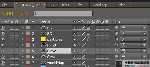 5.你可以先查看一下主合成组的里面由哪些合成组组成,里面有很多合成组.