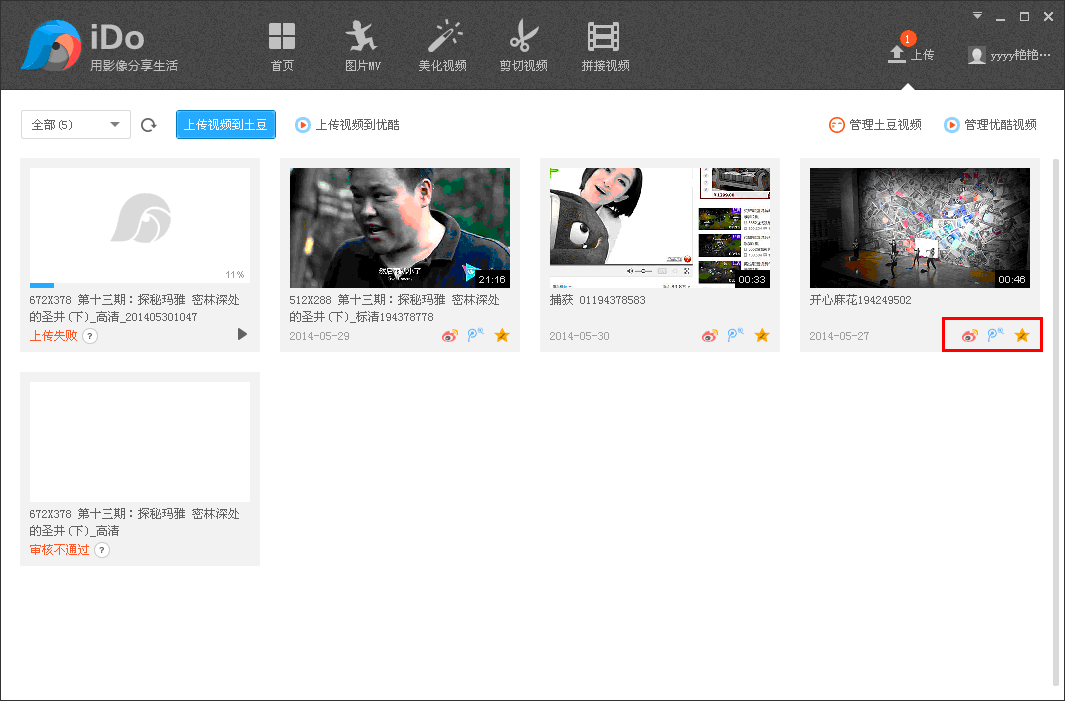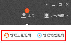 在上传列表,点击“管理视频”,跳转到土豆网进行视频管理;