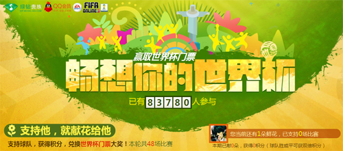 1,活动期间,所有用户均可参与“畅想你的世界杯”活动,可以对您喜欢的球队献花支持,你将会进入积分排行榜,可以通过继续献花累计积分提升名次,排行榜的前5~10名(具体的名次设定和不同期设置的奖品相关)将会得到当期大奖。