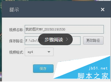 在保存文件窗口中设置文件的名称和路径。目前只支持MP4视频格式输出