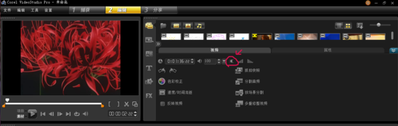 3.剪完视频后点击右下角的【选项】窗口,再点击那个红箭头就可以【消去视频里面的原声】,这样就不会影响背景音乐了。