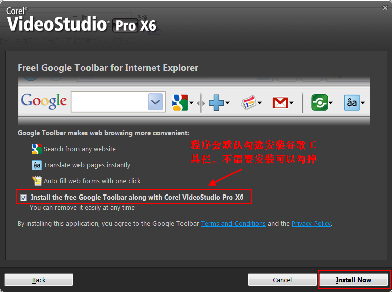 安装程序默认勾选谷歌工具栏,反选掉,不用安装否则安装速度会大幅减慢。