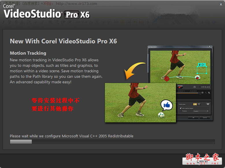 4、开始安装会声会影x6,这步需要一段时间,等待安装过程中建议不要进行其他操作,特别是清扫垃圾。