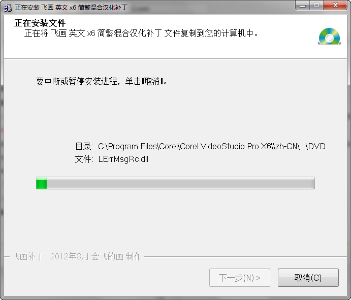 8、完成激活后我们就来将软件进行汉化,下载上面给大家提供的会声会影x6汉化包,打开汉化包里面的程序,单击下一步。软件自动识别安装的会声会影X6位置,所以不需修改。单击安装。