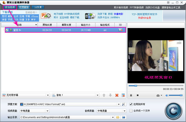 4、设置输出视频的存储目录,然后点击“转换”按钮就可以开始转换输出消音之后的视频