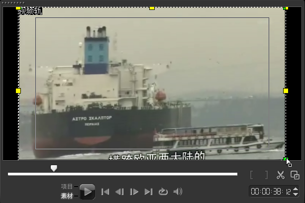 三、在预览面板中,将鼠标移至视频左下角的绿色小点上,并将视频往下拉,用同样的方法将右下角往下拉,直至字幕部分看不见为止。