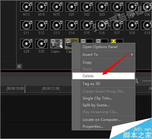 4、知道了它的位置,这时候我们回到会声会影的软件界面中,在你想要删除的录制视频上面点击右键,然后在弹出的下拉菜单中点击删除。