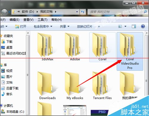 8、在d盘中找到我们文档双击打开后,找到Corel VideoStudio Pro的文件夹,我们接着双击把它打开。
