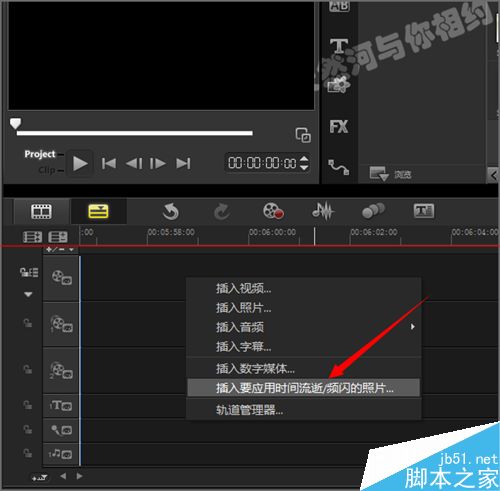 7、把素材全部删除之后,我们在轨道上点击右键,插入要应用时间流逝/频闪的照片。