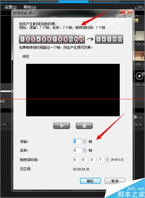 9、这时候它就会出现一个时间流逝/频闪的对话框,这时候我们可以进行选择,也可以保持它的默认,然后点击确定。