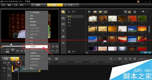 3、播放到你想要截取重复镜头的位置,暂停,然后把鼠标放在主视频轨 点击右键--选择分割素材
