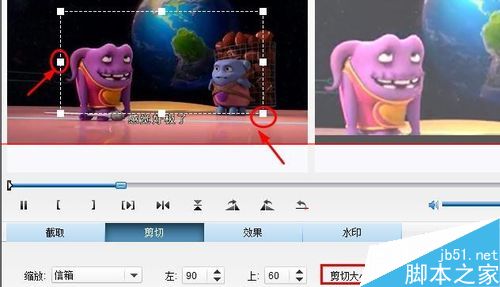6、这时候我们可以在原始视图中调整你要裁剪的视频大小,这时候在剪切大小中会显示你当前截取的视频大小。