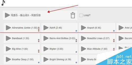 6、在LOOP前边打上勾。LOOP就是循环的意思,如果不打勾,那么音乐不会循环播放。按照你的需求,如视频播放完,音乐时间刚刚好,那就不用打钩,如果视频还没播放完音乐就没了,那就在LOOP前边打上勾。