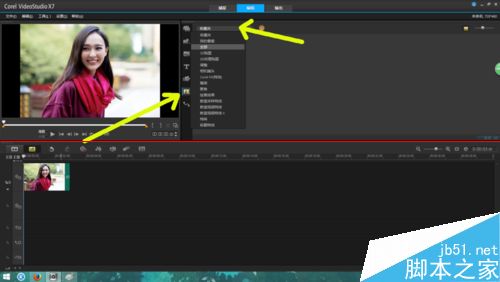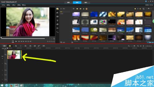 1、首先在会声会影中打开一张图片素材,单机素材可以在预览窗口看到这张图片