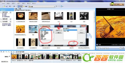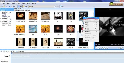 4、将图片和音乐都按照这个方法添加到时间线上,然后右键单击时间线上的图片,选择视频效果,选择喜欢的效果添加到效果中,然后单击确定,将每个图片都按自己所喜欢的效果添加上