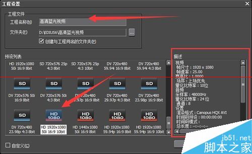 1、开Edius软件,新建1920×1080 50i的全高清工程设置