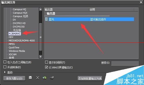 5、自动打开输出插件对话框,选择:H.264/AVC-蓝光