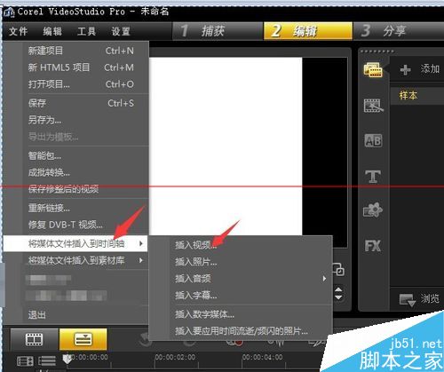 1、对于安装完成后的会声会影×5软件,我们打开软件进入主界面,然后制作完成自己的视频,这里不会在讲述。而小编没有制作视频,所以我选择导入已有的视频,如下图:
