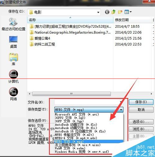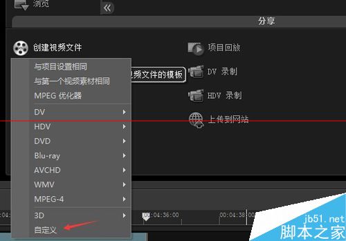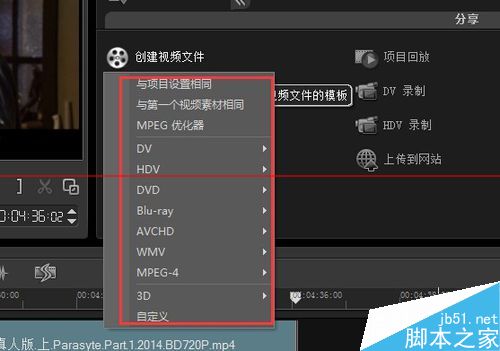 4、这里我们选择‘创建视频’选项,如下图,进入到输出视频格式选项。选项有很多可以输出DV/HDV/WMV/MPEG-4等视频格式。读者可以根据自己的意愿选择输出格式。