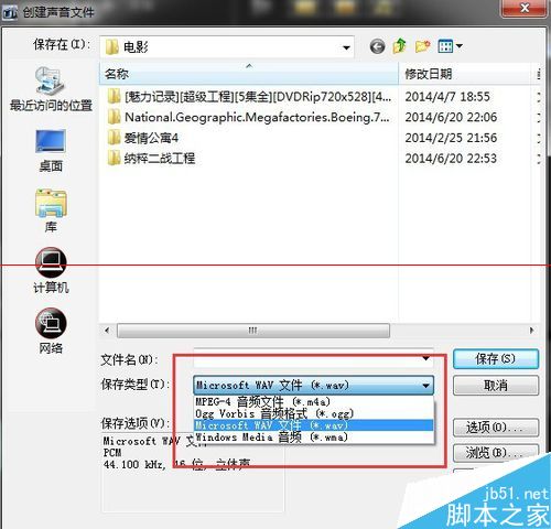 5、对于输出的音乐素材时,我们现在‘创建声音文件’,如下图可以输出声音的不同格式。
